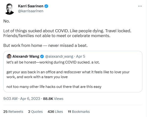 For the past 3 years all the jobs in tech were performed from home and the world did not collapse. I said back in March 2020 the world has changed and there is no going back. I remember in the late 2020 and early 2021 some management folk back then stating that CEO was too quick writing to all employees work from home is there to stay and that hybrid work model is the way forward. “How come, we have special arrangements with the customer, we need to do the work from the office”. Some people will not adjust, but the change is taking place regardless of their views.